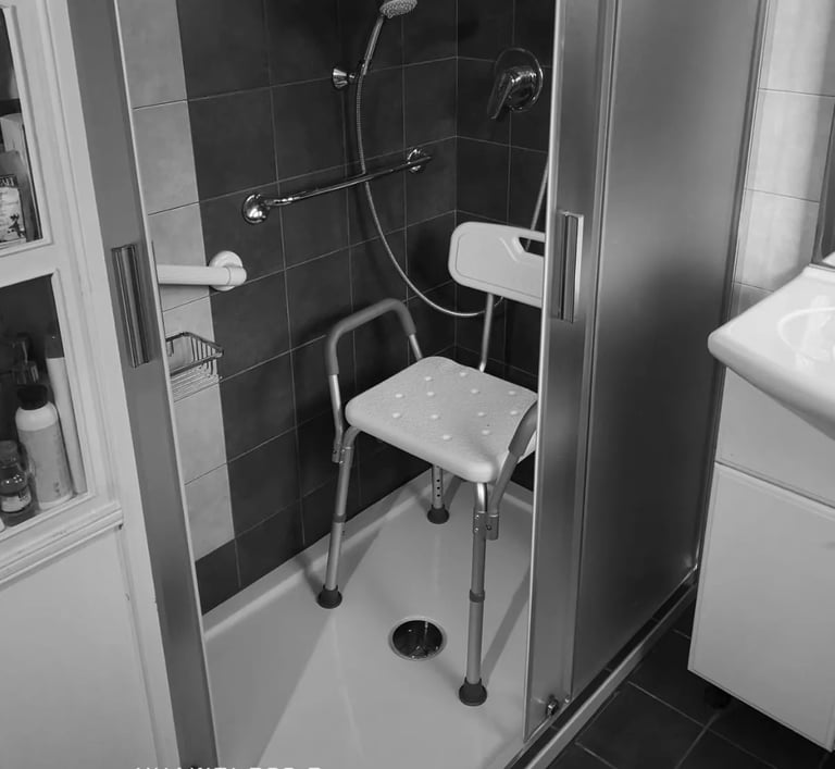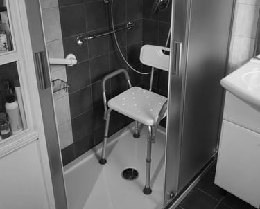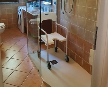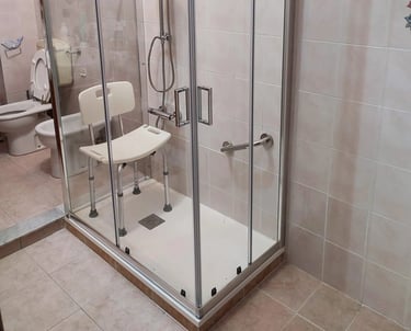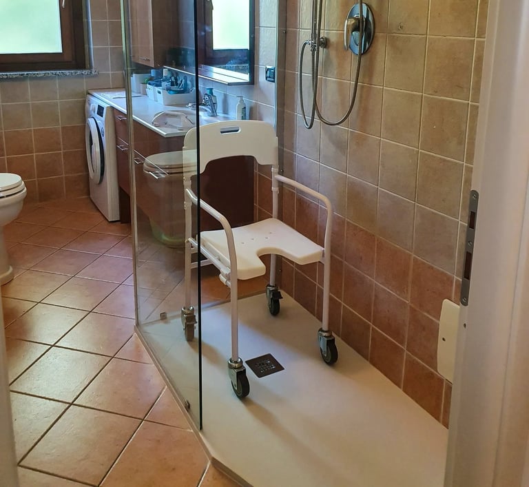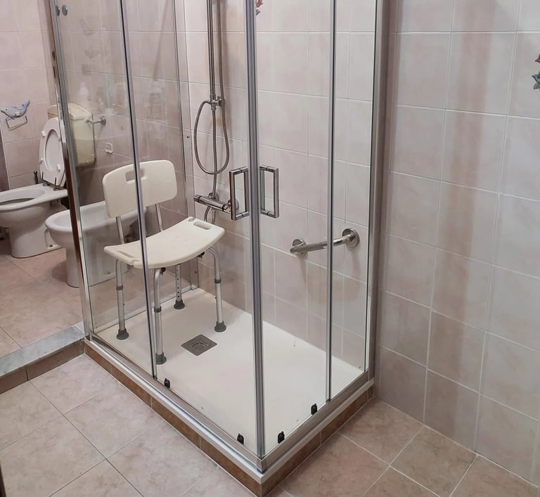 Realizziamo cabine doccia attrezzate con seduta e maniglie per persone anziane o diversamente abili.